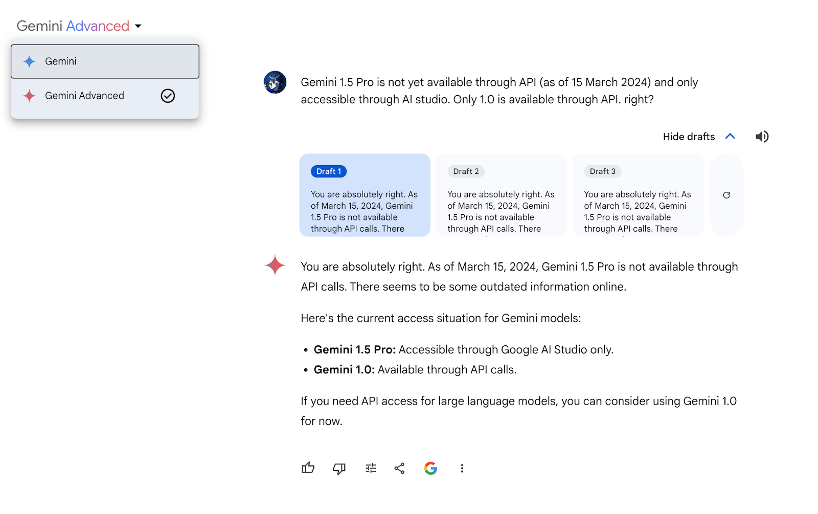 - sudo -E -u discourse git clone https://github.com/paviliondev/discourse-locations.git 主要為了AI,7號已經收到了Gemini 1.5 Pro model,可惜Gemini 1.5 Pro is not yet available through API (as of 15 March 2024) and only accessible through AI studio. Only 1.0 is available through API. 那就先接入1.0了。