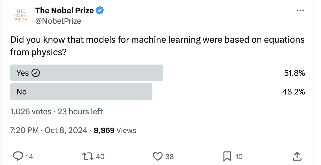 官方例行引戰投票:https://x.com/NobelPrize/status/1843612338639040849