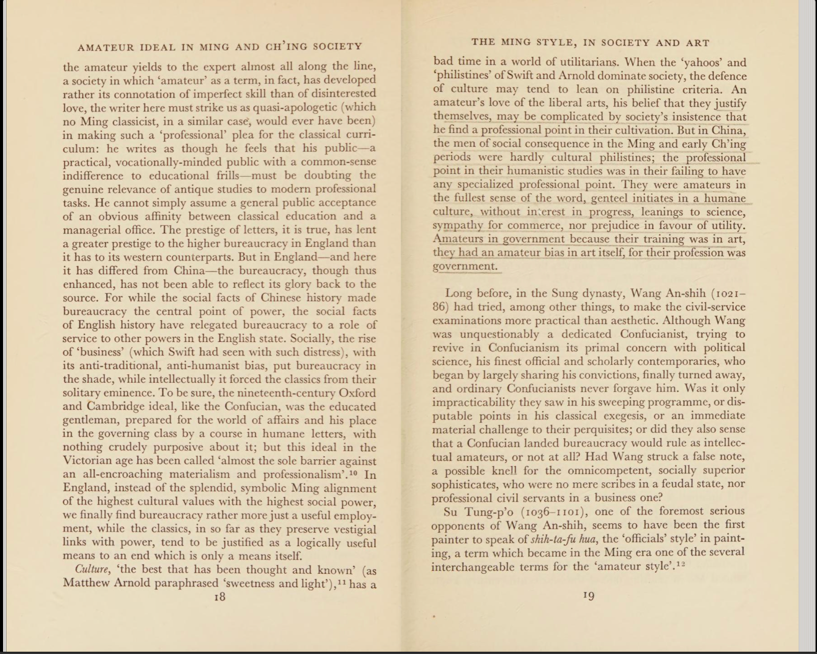 - “由於這些朝廷官員的訓練在於藝術,而非治理,他們對藝術本身也抱持著外行人的偏見,畢竟他們的職業專長是行政。”
