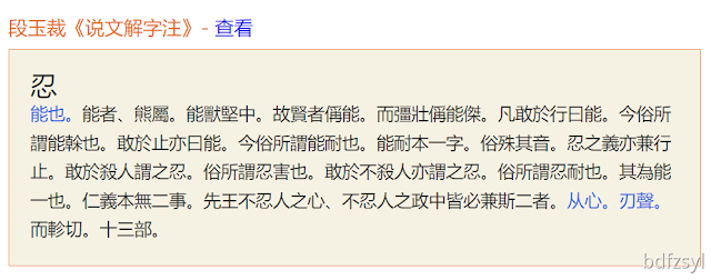 至此,基於字本義與詞源義,忍人,均指“敢於行不義的人”,而課本將忍人解釋為“狠心对待别人”,是將忍字視為動詞,與字源詞源,俱不貼合。