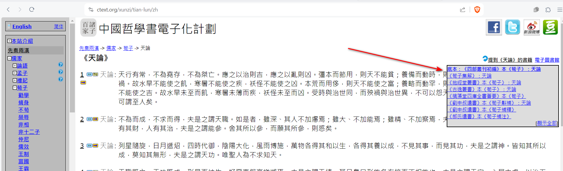 就是比如我不知道“参”和“其”还有“所以”以及“所”的意思怎么办😿即使我使用了汉典这种字典,由于不会的词太多了我还是不能理解句意QAQ(尤其是参还是多音字。2023年9月起,這是第一個有質量的問題,學生來自諸子課程。沒在企業微信回复,是因為問題自身足夠複雜。概述下問題:一篇古文,在讀不懂時,如何讀懂?第一層,要不要讀懂?我的答案是,不要。古文,甚至整個語言的學習,從來不該舉一反三,而應該是舉三反一。舉一,是逐字精讀,逐字背記,要求遷移。舉三則是不糾結一篇一章一節一字詞,讀到這裡,得其大略,其他時間去多讀其他篇章了。舉三的讀法,是真讀書;舉一的讀法,是為考試的語文課。兩者各有價值。諸子這門課,不考試,真讀書,所以,答案是,不要糾纏這個句子,走過去,看看本篇大概意思後,其他時間,看其他篇目。第二層,這些字怎麼辦?在本句的小語境內,即便加入漢典,也完全可能解讀不清楚;古書之所以有注疏,本質上就是因為這個。那麼,就過去嗎?其實不是,讀書百遍其義自見的唯一合理性,其實是通過更多類似語境語句,補足釋義可能性。語義一事,說到底,是語義場規定的,讀書多的人,會不自覺將將場域帶回具體篇章;讀書少的人,則做不到這點。亦即,這次查漢典也沒查明白是吧,沒關係,放過去。說到底,讀多了,不認識的纔可能慢慢認識,無論生僻實詞還是熟悉但坑人的虛詞。第三層,前兩層我知道了,但我就要知道這裡的字詞句。本課程這週因病停了一次,不停的話,也該到這裡了。亦即:讀不懂時,如何讀懂?專業的處理流程是這樣的:先查前代注疏。這裡有兩個方式:其一,感恩德龍,在他的網站 https://ctext.org/xunzi/tian-lun/zh