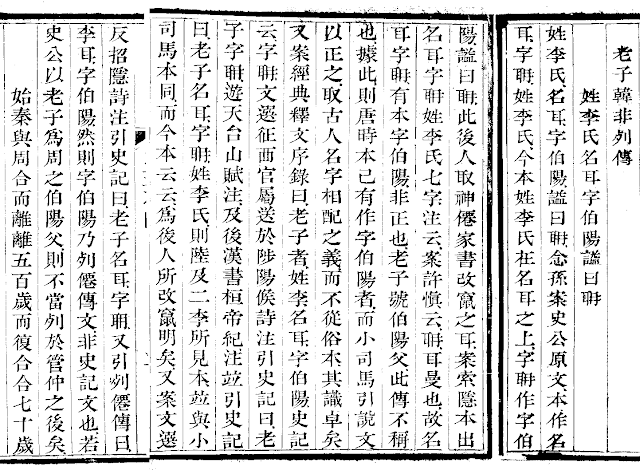 王氏要點:司馬遷《史記》原文當作:名耳,字聃。字伯陽的說法,是因為至少唐代,就已經有人將《神仙傳》文字竄入了《史記》正文: 郝氏遺書+06+列仙傳校正開元二十三年,大唐王朝為敬李氏祖,調整《史記》老莊到列傳之首。