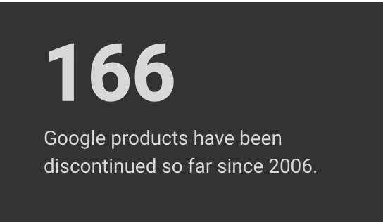 回顧互聯網腳印,多個切身事件下,很早就感知到國內平台的不靠譜,也基本做了脫離;國外靠譜嗎?當然也不;否則,何至於有 https://killedbygoogle.com/ 一類,截止此刻: