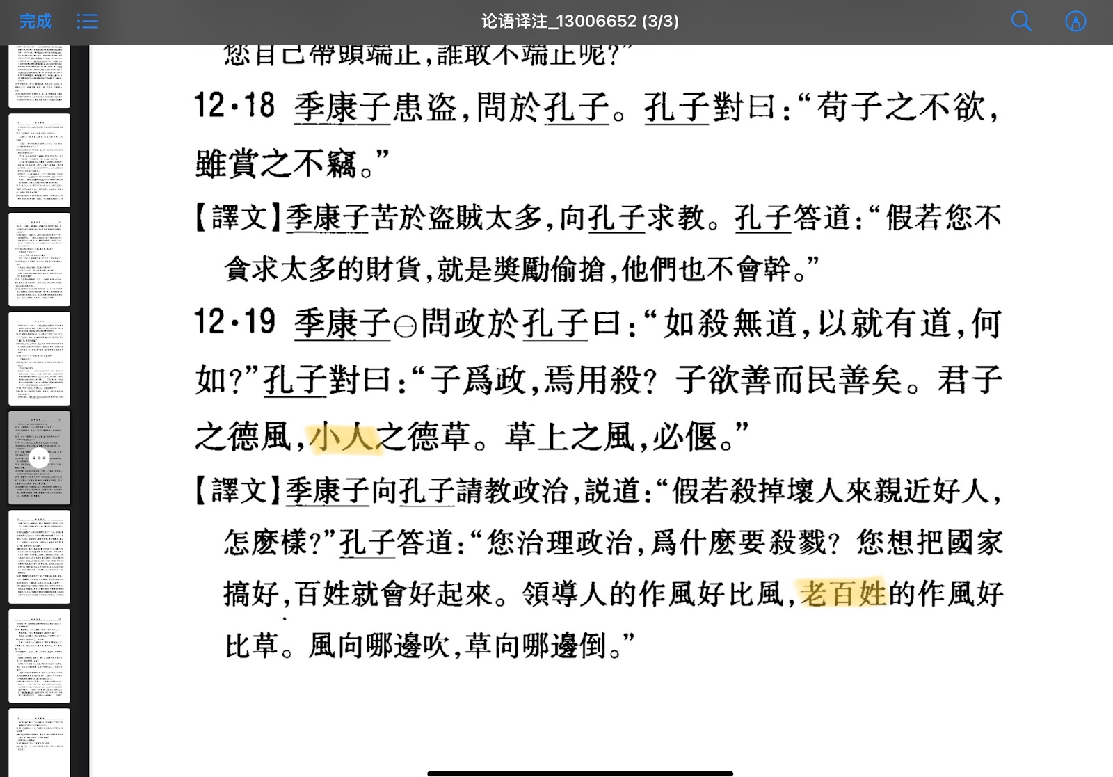 孔子在這打這個比方,就在說,季康子啊,你應該當一個君子講求道德,因為只要你風一下,小老百姓就一定隨風飛舞,跟著你飄,陪著你搖,有力氣時,還可以山呼個萬歲啥的:)上述如果無誤,你的結論也就是對的。下面說法你不一定認同。俺覺得,這24次小人,無論是不是和君子對出,本質上,都在對一個個具體的生命做評頭論足指手畫腳的冒犯。在精英治國的文化圈,能看出這層的其實蠻少見,大家都默認這是常識。沒有領導,小民就沒有方向了的。能據此繼續深化,並反思高貴者賤視微末者這個複雜糾結現象的,就更少了。很不幸,這一直不是一個簡單的是非對錯問題,並非一定不對,並非一定對。個人厭惡論語的一個理由,就是因為裡面有太多這種披著合情合理外衣的句子,更多人會在沒覺得自己被攻擊的閱讀中,完成所謂正能量的三觀塑造。誰不想當個君子呢,多合理……小人百姓,嗯,一定是不夠努力不求上進的玩意吧。