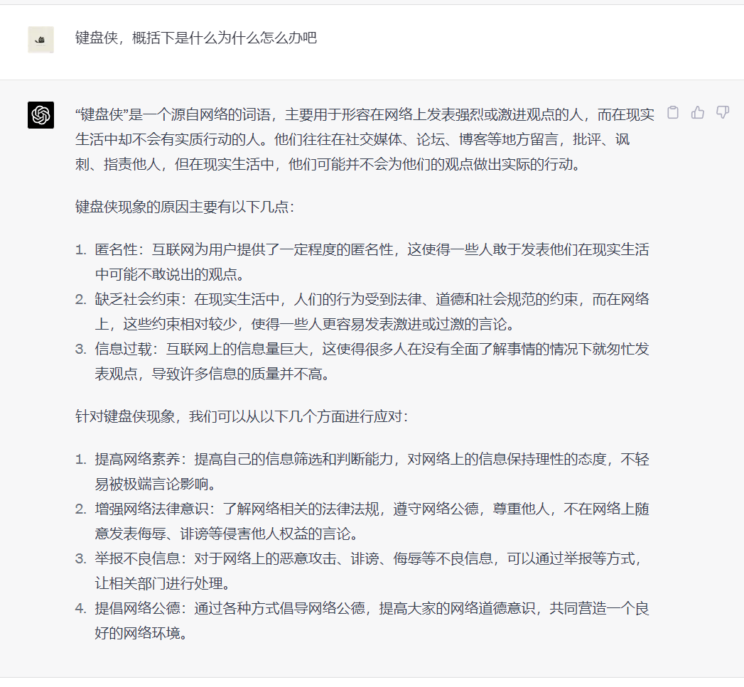 全程看后,两个采访者指向“键盘侠”的话题,前者被糗剪辑小火,后者则获取了”更多用户互动“的正面答案。